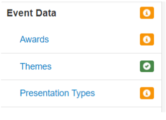 Add the themes that authors will submit against. Click 'Setup' Open image-20240410-012420.png Click 'Event Data' -> 'Themes'Open image-20240410-012426.png Name a theme (and colour code it, optional) TIP: Colour coding is useful when producing the ...